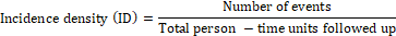 While calculating ID, we assume that the incidence rate is constant throughout the follow-up period. Incidence Density can vary from zero to infinity [24].