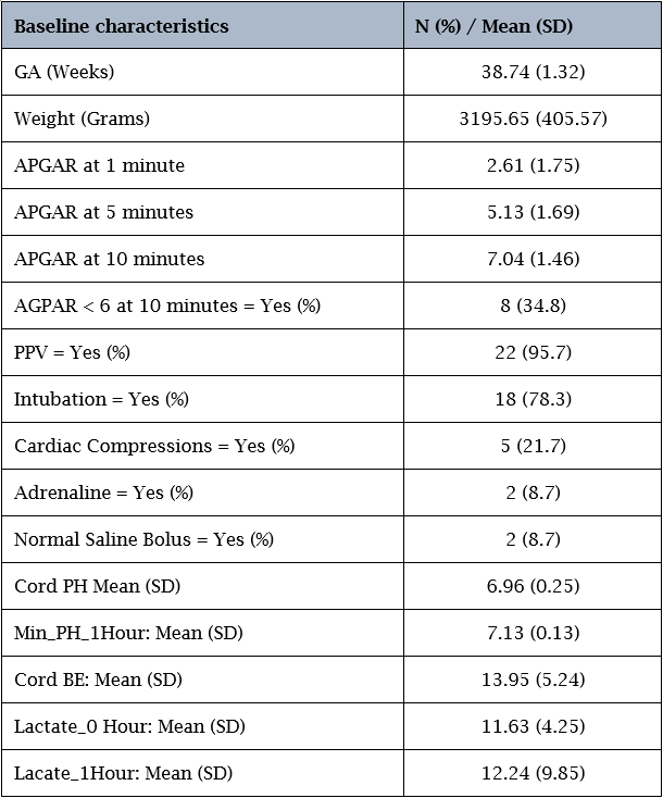 Material and Methods: A retrospective cross sectional observational study was carried out in tertiary care NICU of Dr. Sulaiman Al Habib Hospital Al Qassim KSA. Demographic and clinical data was collected, on pre-approved Performa, using patient electronic health records. The data items included hourly temperature record, neurological examination, relevant labs and MRI results. The data was tabulated and analyzed by SPSS version 23 (IBM Corp, Amonk, NY, USA) software.
